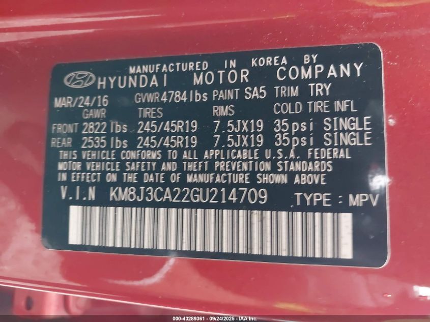2016 HYUNDAI TUCSON 2016 року Бензин, 1.6, Повний привід, vin - KM8J3CA22GU214709 з США