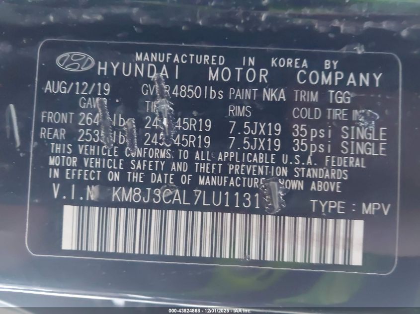 2020 HYUNDAI TUCSON 2020 року Бензин, 2.4, Повний привід, vin - KM8J3CAL7LU113118 з США