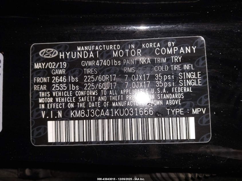 2019 HYUNDAI TUCSON 2019 року Бензин, 2.0, Повний привід, vin - KM8J3CA41KU031666 з США