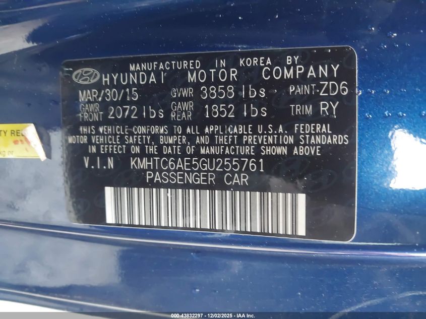 2016 HYUNDAI VELOSTER 2016 року Бензин, 1.6, Передній привід, vin - KMHTC6AE5GU255761 з США