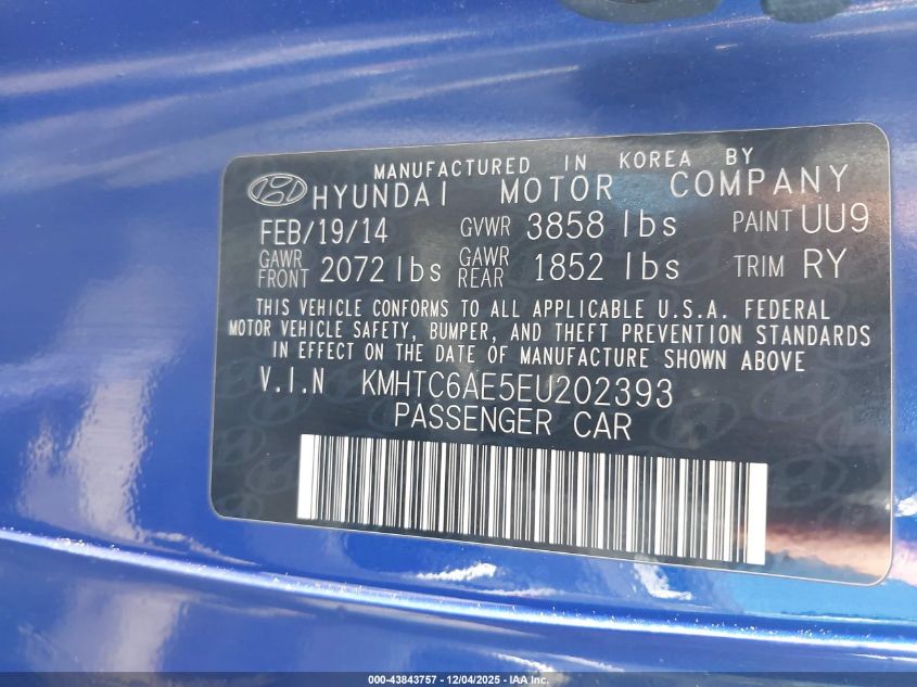 2014 HYUNDAI VELOSTER 2014 року Бензин, 1.6, Передній привід, vin - KMHTC6AE5EU202393 з США