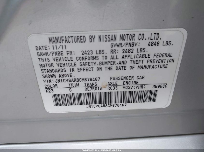 Колір СрібнийЦиліндри 6Привід Повний привідVIN JN1CV6AR8CM676467Стан СтаціонарноУшкодження Передня або задня AutoRIA
