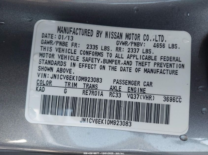 2013 INFINITI G37 BASE