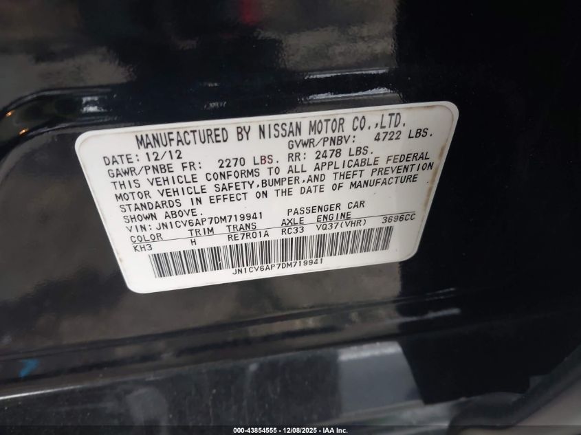 Колір ЧорнийЦиліндри 6Привід Задній привідVIN JN1CV6AP7DM719941Стан Заводиться та їде (перевірено)Ушкодження Задня AutoRIA