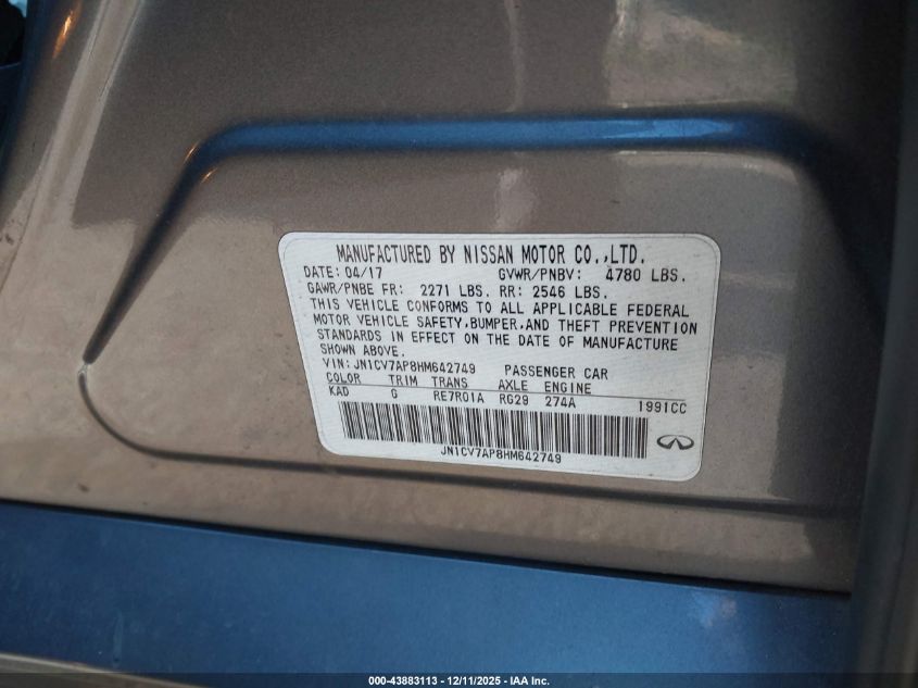 2017 INFINITI Q50 2017 року Бензин, 2.0, Задній привід, vin - JN1CV7AP8HM642749 з США