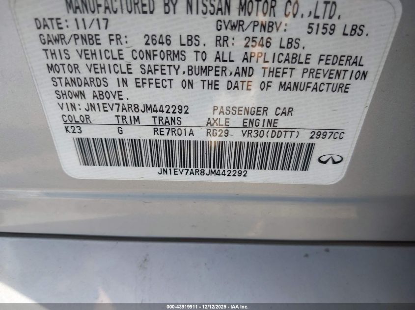 2018 INFINITI Q50 2018 року Бензин, 3.0, Повний привід, vin - JN1EV7AR8JM442292 з США
