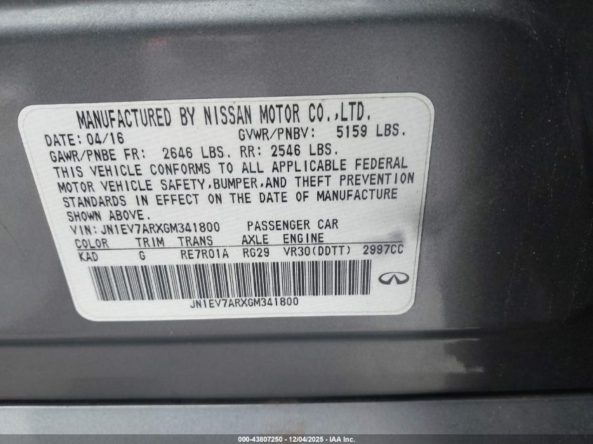 2016 INFINITI Q50 2016 року Бензин, 3.0, Повний привід, vin - JN1EV7ARXGM341800 з США