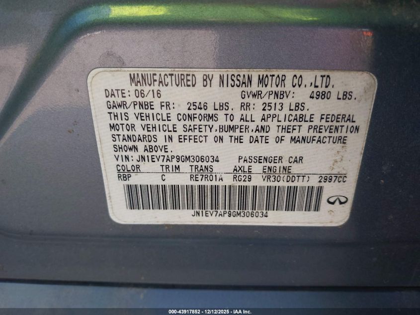 2016 INFINITI Q50 2016 року Бензин, 3.0, Задній привід, vin - JN1EV7AP9GM306034 з США