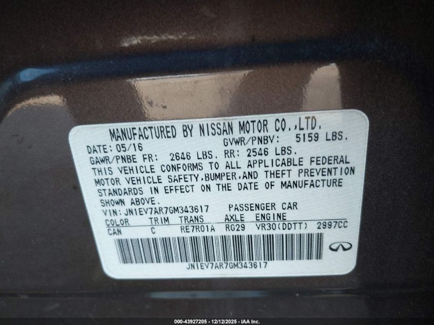 2016 INFINITI Q50 2016 року Бензин, 3.0, Повний привід, vin - JN1EV7AR7GM343617 з США