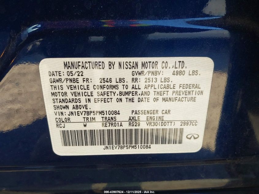 2023 INFINITI Q50 2023 року Бензин, 3.0, Задній привід, vin - JN1EV7BP5PM510084 з США