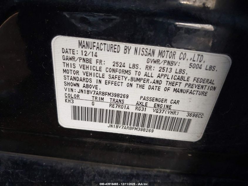 2015 INFINITI Q50 2015 року Бензин, 3.7, Повний привід, vin - JN1BV7AR8FM398269 з США