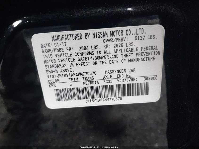 2017 INFINITI Q70 2017 року Бензин, 3.7, Повний привід, vin - JN1BY1AR4HM770570 з США