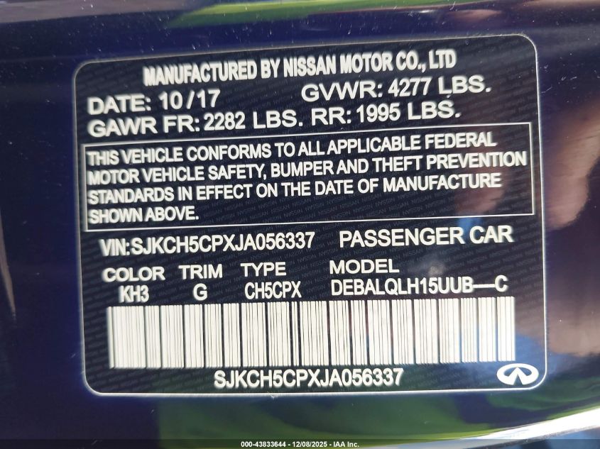 2018 INFINITI QX30 2018 року Бензин, 2.0, Передній привід, vin - SJKCH5CPXJA056337 з США