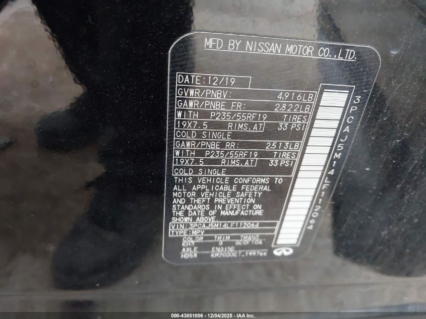 2020 INFINITI QX50 2020 року Бензин, 2.0, Передній привід, vin - 3PCAJ5M14LF112064 з США