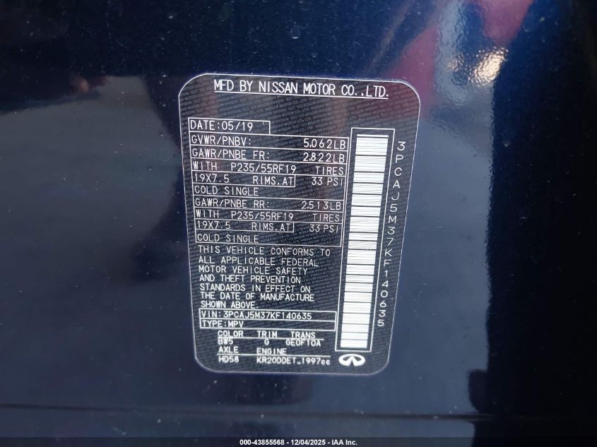 2019 INFINITI QX50 2019 року Бензин, 2.0, Повний привід, vin - 3PCAJ5M37KF140635 з США