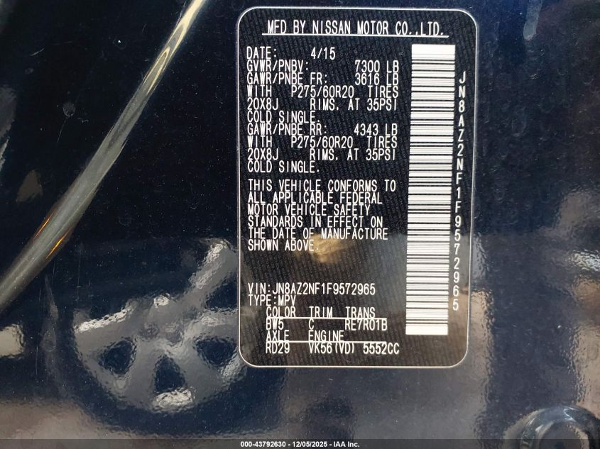 2015 INFINITI QX80 2015 року Бензин, 5.6, , vin - JN8AZ2NF1F9572965 з США