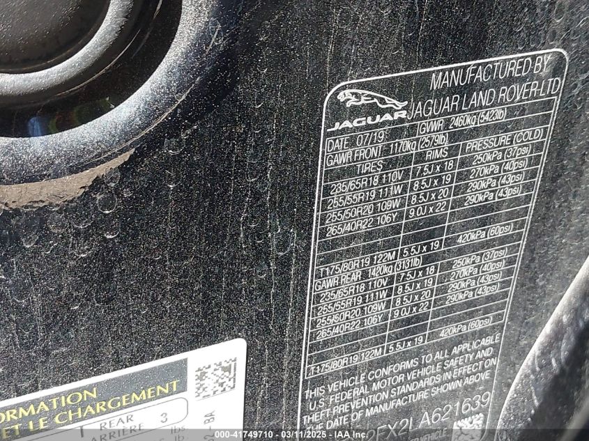 2020 JAGUAR F-PACE 2020 року Бензин, 2.0, Повний привід, vin - SADCJ2FX2LA621639 з США
