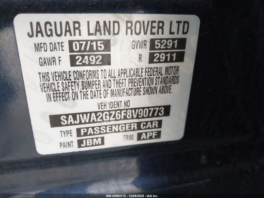 2015 JAGUAR XJ 2015 року Бензин, 3.0, Задній привід, vin - SAJWA2GZ6F8V90773 з США
