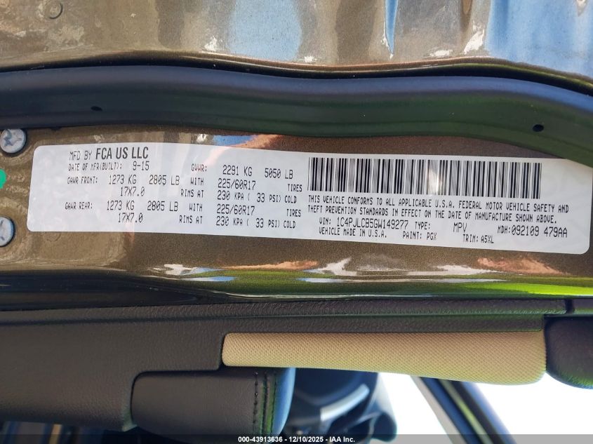 2016 JEEP CHEROKEE 2016 року Бензин, 2.4, Передній привід, vin - 1C4PJLCB5GW149277 з США