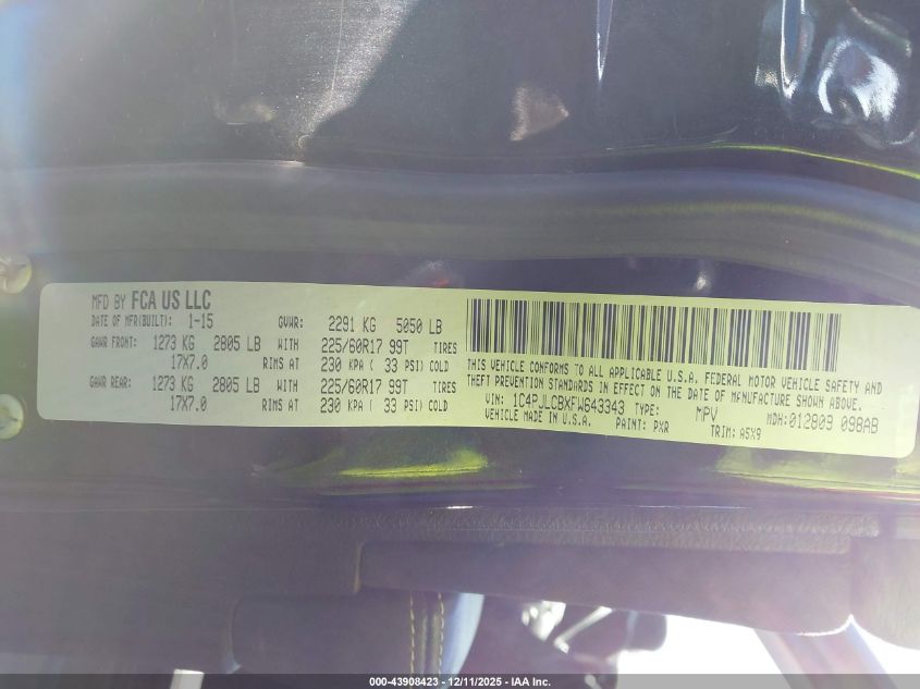 2015 JEEP CHEROKEE 2015 року Бензин, 2.4, Передній привід, vin - 1C4PJLCBXFW643343 з США