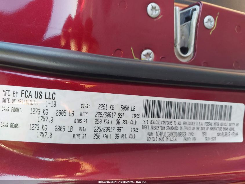 Колір БургундіяЦиліндри 4Привід Передній привідVIN 1C4PJLCB0KD108933Стан Заводиться та їде (перевірено)Ушкодження Передня або задня AutoRIA