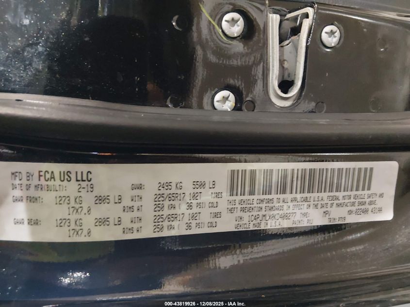2019 JEEP CHEROKEE 2019 року Бензин, 3.2, Повний привід, vin - 1C4PJMLX0KD408277 з США