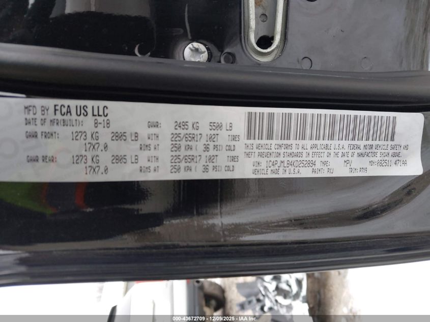 2019 JEEP CHEROKEE 2019 року Бензин, 2.4, Повний привід, vin - 1C4PJMLB4KD252894 з США