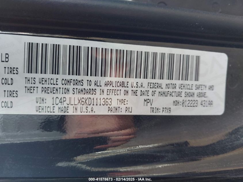 Колір ЧорнийЦиліндри 6Привід Передній привідVIN 1C4PJLLX6KD111363Стан Заводиться та їде (перевірено)Ушкодження Передня або задня AutoRIA