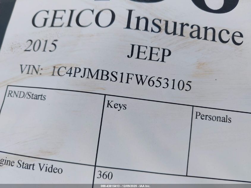 2015 JEEP CHEROKEE 2015 року Бензин, 3.2, Повний привід, vin - 1C4PJMBS1FW653105 з США