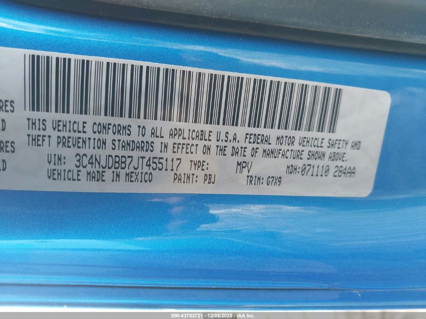 Колір СинійЦиліндри 4Привід Повний привідVIN 3C4NJDBB7JT455117Стан СтаціонарноУшкодження Передня або задня AutoRIA