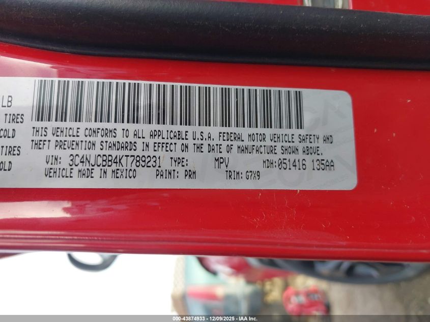 Колір ЧервонийЦиліндри 4Привід Передній привідVIN 3C4NJCBB4KT789231Стан СтаціонарноУшкодження Передня ліва AutoRIA