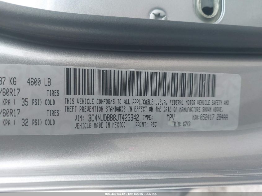 2018 JEEP COMPASS 2018 року Бензин, 2.4, Повний привід, vin - 3C4NJDBB8JT423342 з США