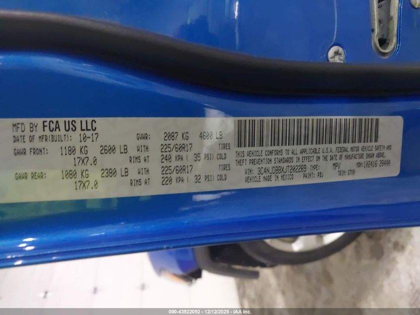 Колір СинійЦиліндри 4Привід Повний привідVIN 3C4NJDBBXJT202289Стан Заводиться та їде (перевірено)Ушкодження По всьому авто AutoRIA