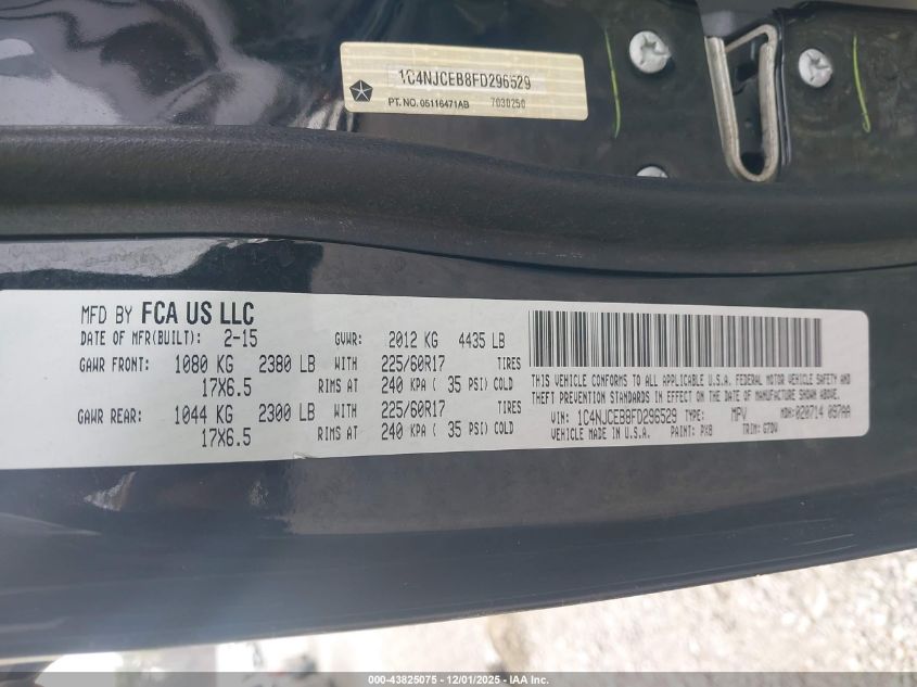 2015 JEEP COMPASS 2015 року Бензин, 2.4, Передній привід, vin - 1C4NJCEB8FD296529 з США