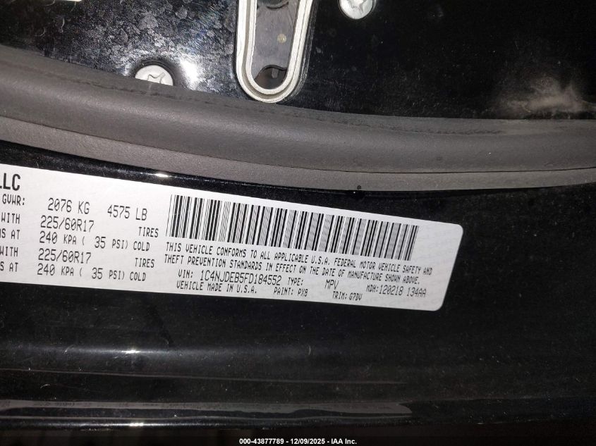 Колір ЧорнийЦиліндри 4Привід Повний привідVIN 1C4NJDEB5FD184552Стан СтаціонарноУшкодження Права сторона AutoRIA