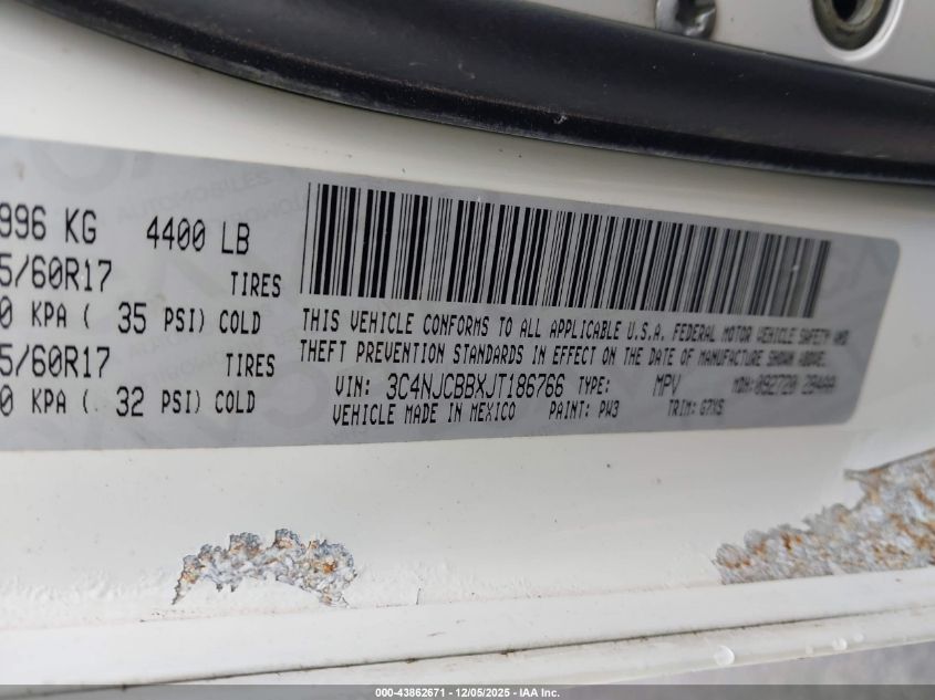 Колір БілийЦиліндри 4Привід Передній привідVIN 3C4NJCBBXJT186766Стан СтаціонарноУшкодження Передня або задня AutoRIA