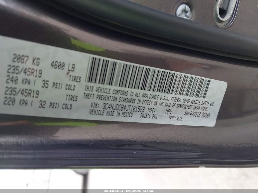 Колір СірийЦиліндри 4Привід Повний привідVIN 3C4NJDCB4JT101523Стан СтаціонарноУшкодження Передня або задня AutoRIA