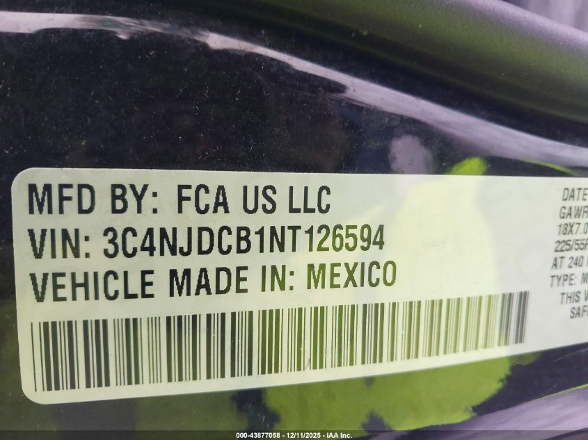 Колір ЧорнийЦиліндри 4Привід Повний привідVIN 3C4NJDCB1NT126594Стан СтаціонарноУшкодження Передня або задня AutoRIA