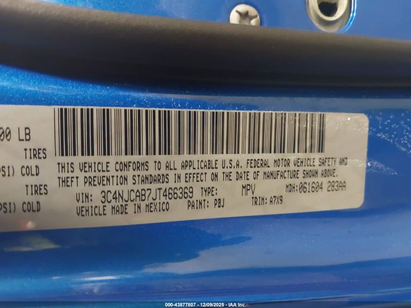 Колір СинійЦиліндри 4Привід Передній привідVIN 3C4NJCAB7JT466369Стан Заводиться та їде (перевірено)Ушкодження Передня права AutoRIA