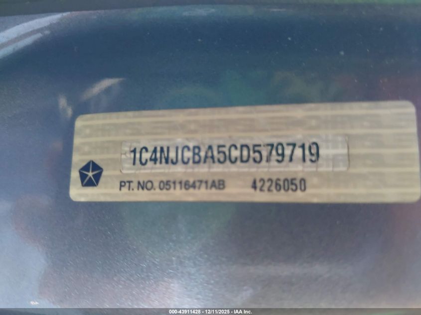 Колір СірийЦиліндри 4Привід Передній привідVIN 1C4NJCBA5CD579719Стан НевідомоУшкодження Передня ліва AutoRIA