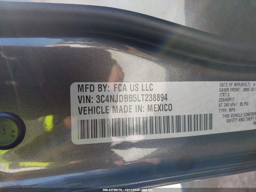 Колір СірийЦиліндри 4Привід Повний привідVIN 3C4NJDBB5LT238894Стан НевідомоУшкодження Задня ліва AutoRIA