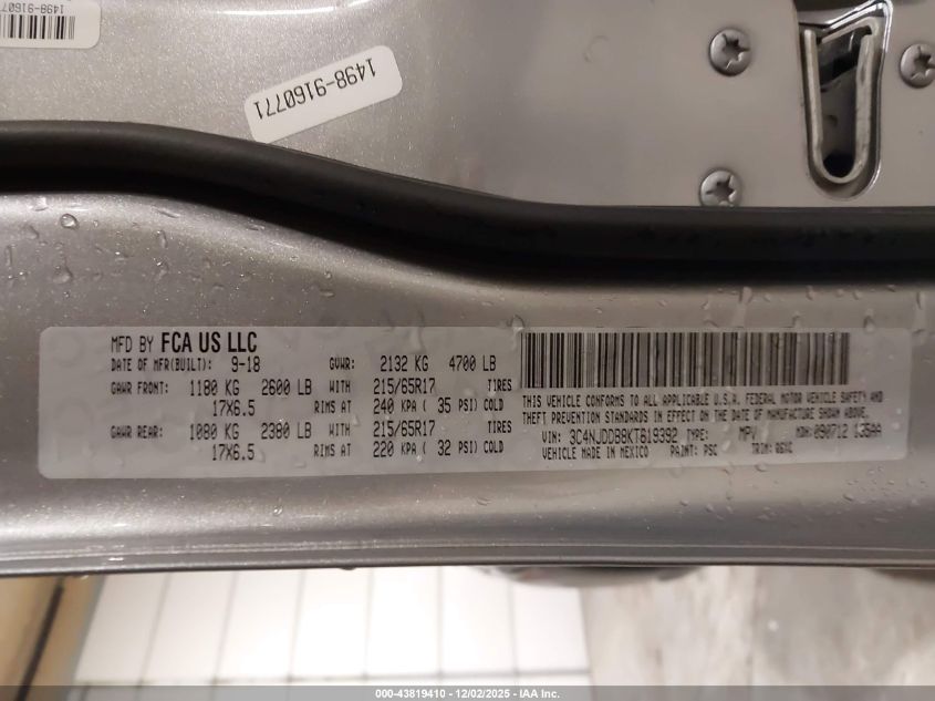 2019 JEEP COMPASS 2019 року Бензин, 2.4, Повний привід, vin - 3C4NJDDB8KT619392 з США