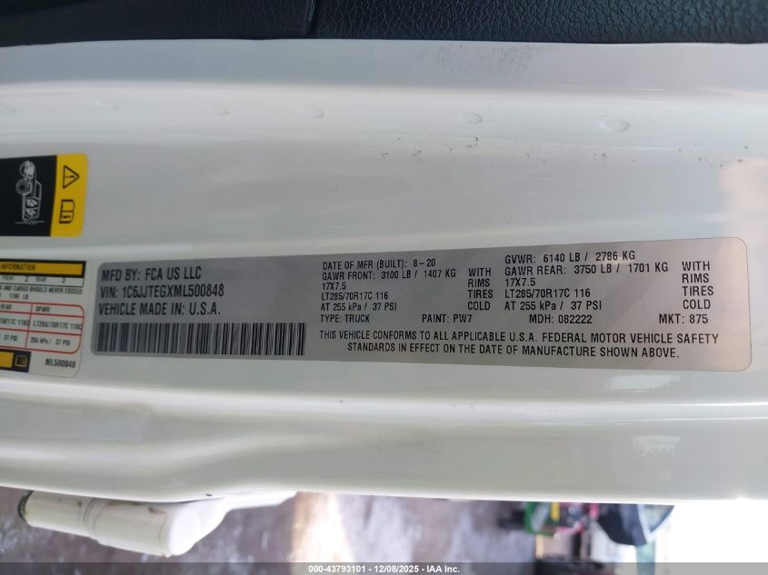 2021 JEEP GLADIATOR 2021 року Бензин, 3.6, Повний привід, vin - 1C6JJTEGXML500848 з США