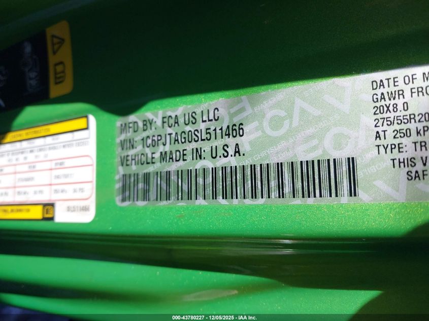 2025 JEEP GLADIATOR 2025 року Бензин, 3.6, Повний привід, vin - 1C6PJTAG0SL511466 з США