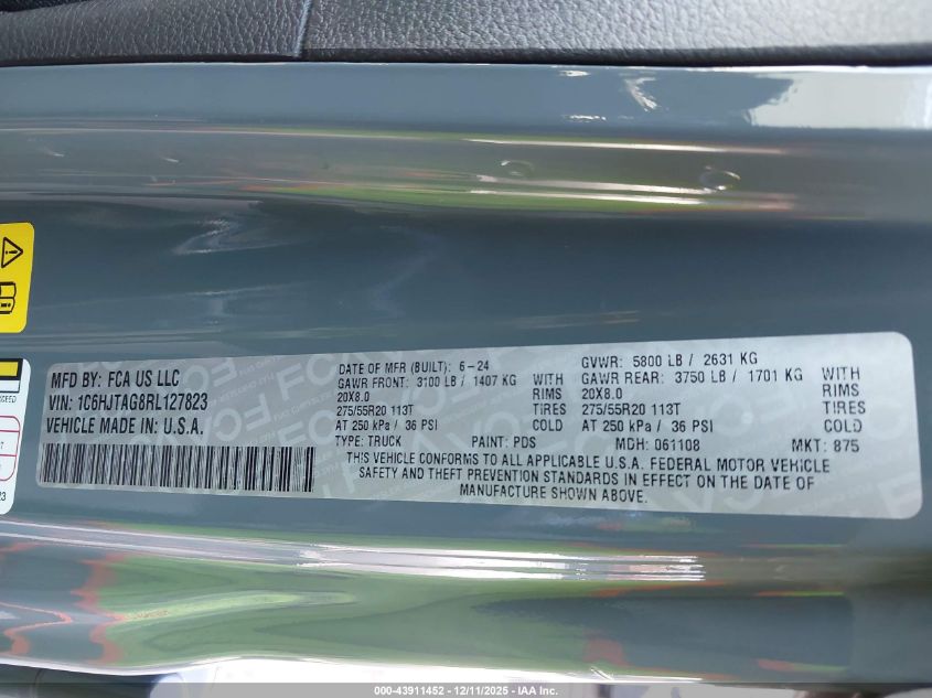 2024 JEEP GLADIATOR 2024 року Бензин, 3.6, Повний привід, vin - 1C6HJTAG8RL127823 з США