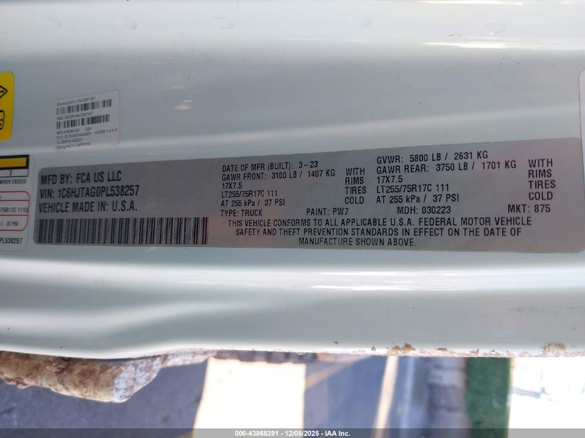 2023 JEEP GLADIATOR 2023 року Бензин, 3.6, Повний привід, vin - 1C6HJTAG0PL538257 з США