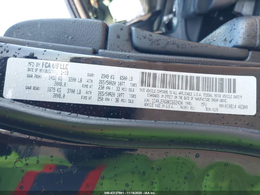 2019 JEEP GRAND CHEROKEE 2019 року Бензин, 3.6, , vin - 1C4RJEAG0KC662434 з США