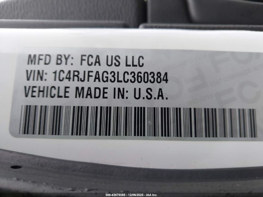 2020 JEEP GRAND CHEROKEE 2020 року Бензин, 3.6, Повний привід, vin - 1C4RJFAG3LC360384 з США
