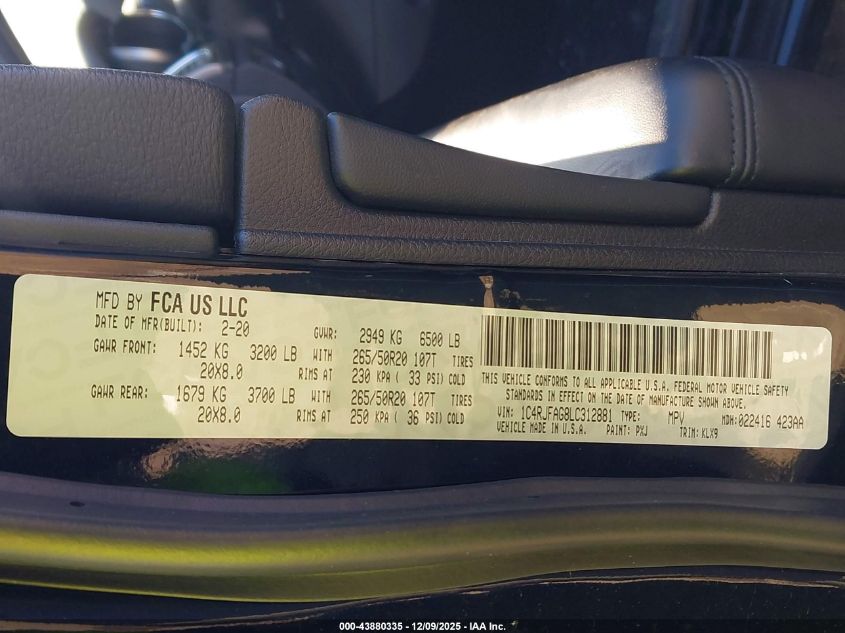 2020 JEEP GRAND CHEROKEE 2020 року Бензин, 3.6, Повний привід, vin - 1C4RJFAG8LC312881 з США