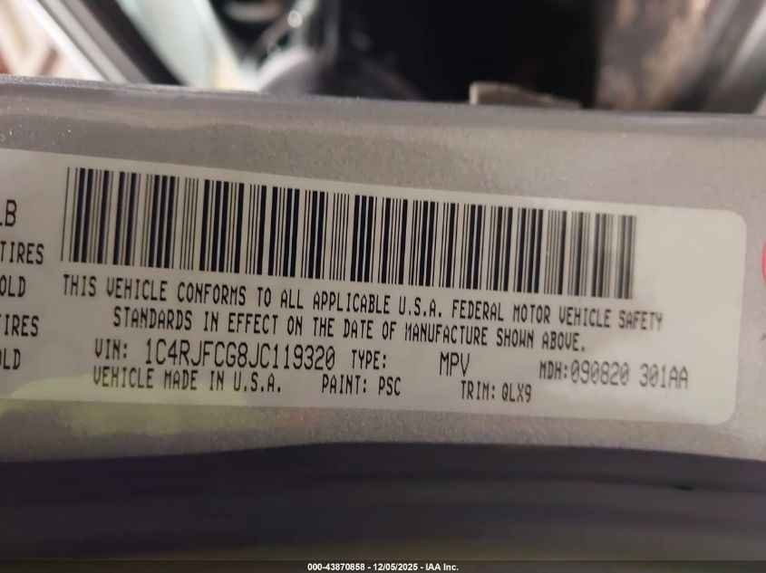 2018 JEEP GRAND CHEROKEE 2018 року Бензин, 3.6, Повний привід, vin - 1C4RJFCG8JC119320 з США